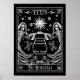 Diseño de tarjetas tarot para los amantes de la horchata. La Horchata. Ilustracion blanco y negro con un palo de canela, flores, sol, sombrero y esqueletos.