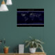 Te encantará nuestro poster de esta imagen en particular, usada por innumerables sitios web...como ya hemos añadido, se trata de un bonito añadido a la decoración. En esta particular imagen nocturna del mapa de la Tierra se pueden ver las ubicaciones de luces permanentes en la superficie de la Tierra, e identificar las regiones de nuestro planeta que ocupamos. Ha sido necesario convertir varias imágenes de la NASA en esta proyección porque originalmente las muchas imágenes diferentes no coincidían. El mapa final consta de 87.970 imágenes. Las áreas más brillantes de la Tierra son las más urbanizadas, pero no necesariamente las más pobladas (comparemos Europa occidental con China e India). Las ciudades tienden a crecer a lo largo de las costas y las redes de transporte. El sistema de autopistas interestatales de los Estados Unidos aparece como un entramado que conecta los puntos más brillantes de los centros urbanos. En Rusia, el ferrocarril Trans-Siberiano es una delgada línea que va desde Moscú a través del centro de Asia hasta Vladivostok. El río Nilo, desde la represa de Asuán hasta el mar Mediterráneo, es otro hilo luminoso a través de una región por lo demás oscura. Algunas regiones siguen escasamente pobladas y poco iluminadas. La Antártida es completamente oscura. Las selvas interiores de África y Sudamérica son en su mayoría oscuras. Los desiertos en África, Arabia Saudita, Australia, Mongolia y Estados Unidos también están mal iluminados (excepto a lo largo de la costa y ríos), junto con los bosques boreales de Canadá y Rusia, y las grandes montañas del Himalaya. Las imágenes detalladas de las ciudades fueron tomadas por astronautas a bordo de la Estación Espacial Internacional. Estos se han obtenido del Laboratorio de Análisis y Ciencia de la Imagen del Centro Espacial Johnson-NASA. "La puerta a la fotografía astronauta de la Tierra".