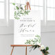 Bienvenido a su evento con este cartel de bienvenida de ducha de personalizable. Cuenta con una vegetación acuática y flores blancas. Personalice este signo de ducha de novia personalizado añadiendo sus detalles. Este signo de la ducha verde es perfecto para las duchas nupales de primavera e invierno. Los elementos coincidentes están disponibles.