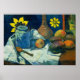 Una de las posesiones más preciadas de Gauguin fue una pintura de Cézanne, Still Life with Fruit Dish, que él emula en esta imagen. Gauguin sustituyó los mangos por las manzanas de Cézanne y un paño impreso de estilo tahitiano por un diseño de papel pintado floral francés. Una partida importante es la figura humana en la parte superior derecha, vislumbrada a través de una puerta o ventana.