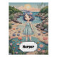 En la orilla de arena, un chica chibi de tonos pastel con una fogonera de pelo violeta y ojos azules brillantes, rodeado por el mundo en miniatura de las piscinas rocosas. La luz del sol se filtra a través del agua clara, iluminando los tesoros ocultos que hay dentro. La marea ha disminuido, dejando atrás una serie de criaturas fascinantes, cada una de ellas una maravilla para contemplar. ¿Sabías que algunas especies de anémonas marinas pueden vivir más de un siglo?