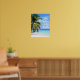 Todos los días puede ser un día de playa con este matte poster de un hermoso día soleado, playa de arena blanca, palmeras balanceadas y aguas azul cristalinas con las palabras "La vida es mejor en la playa". Este poster te susurra a recuerdos de relajarte en la cálida arena a la sombra de una palmera mientras la fresca brisa se desliza sobre la piel.