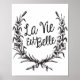 La vie est belle - cita francesa en una corona, laurel floral. Tipografía negra.