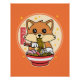 Póster La zorra linda comiendo Ramen Kawaii regalo de com