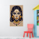 Una mujer con pendientes de oro y collar, labios amarillos