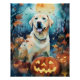 Póster Labrador de Halloween con calabazas temerosas