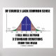 Showcase your wry bell curve attitude with a dose of psychological humor with this poster featuring the bell curve distribution (normal distribution curve, Gaussian curve) along with the following saying: "Of Course I Lack Common Sense - I Fall Well Beyond 3 Standard Deviations From The Mean". Memorable geek humor stats poster gift for anyone who lacks common sense!