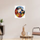 Ilustracion de alta moda, con clase y estilo Art Deco francés. Retrato de una hermosa joven mujer con un gorra negro con flores, blanco negro, rojo, amarillo azul. Guay, diseño moderno y artístico.