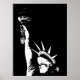 Un divertido diseño de estilo pop negro y blanco con la Estatua de la Libertad.
