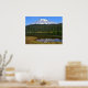 Activa un espacio vital con esta imagen fotográfica poster que incluye una imagen panorámica y paisajística de un techo nevado del Monte Rainier que se refleja en los lagos de reflexión, en el Parque Nacional Mount Rainier, estado de Washington. Seleccione el tamaño del poster y otras opciones que desee.