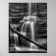 Fotografía en blanco y negro de la cascada "Lake Falls" del Parque Estatal Matthiessen en Illinois