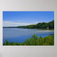 Foto del lago Gaston, South Hill, Virginia, en un día soleado. El verde vibrante y el azul fueron la excusa perfecta para salir del auto en un paso elevado y sacar una foto.