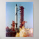 Vista de lanzamiento de la misión Gemini-Titan 3. El ascensor GT-3 fue a las 9:24 am. (EST) el 23 de marzo de 1965. La nave espacial Gemini-3 "Molly Brown" transportó a los astronautas Virgil I. Grissom, piloto de mando, y John W. Young, piloto, en tres órbitas de la Tierra. Gemini 3 fue la primera nave espacial en órbita terrestre de la serie Gemini. Fue piloteado por los astronautas Virgil "Gus" Grissom y John Young, con el objetivo principal de demostrar las cualificaciones tripuladas de la nave espacial Gemini, incluida la evaluación del diseño Gemini de dos personas, la red mundial de rastreo, la actitud y el sistema de maniobra en órbita (OAMS), el control de la trayectoria de vuelo de reentrada y el punto de aterrizaje, los sistemas de naves espaciales y la recuperación de naves espaciales. Los objetivos secundarios incluían la evaluación del equipo de la tripulación de vuelo y los efectos de las oscilaciones de vehículos de lanzamiento de bajo nivel (POGO) en la tripulación, el desempeño de tres experimentos y la obtención de cobertura fotográfica de la órbita.
