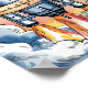 Un ilustracion acuarela de un cohete con una gran cruz sobre él. El cohete está rodeado de nubes. Hay un cartel adjunto al cohete con el texto "Lanzamiento en la aventura de Dios". El fondo es un cielo azul vibrante con nubes blancas onduladas.