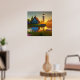 Póster Large Barn Farmhouse Pond at Sunrise