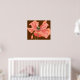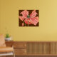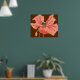 A large pink flower rests on a deep red background in this painting by Nancy Slocum. The flower is vibrant and in full bloom. A stunning gift for a special person in your life!
