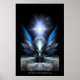 Las alas de la Antropolis es una pieza que debería haberse hecho hace mucho tiempo; y que planeé hacer hace varios meses y que finalmente implementé con un conjunto de nuevos fractales. Aunque la imagen usa un bajo recuento fractal en comparación con mis otras composiciones fractales, tiene un impacto visual bastante grande ya que parece estar emitiendo luz. En este artículo utilizé fractales creados con el generador fractal Fractron 9000 y el generador fractal Incendia EX VI. La pieza, como su nombre indica, tiene un enfoque central en las estructuras de alas como fractales que rodean una órbita bisectada. Esta estructura descansa en un pedestal que consta de orbes azules profundas y una plataforma cuadrada apilada entre capas de fractales de nubes azul claro y blanco. Dos de los lados son fractales de coral grisáceo que crean una estructura de apoyo que ayuda a definir los elementos fractales del centro inferior que crean una plataforma secundaria aislada de la primera. En el centro superior hay una estrella brillante con un toque de nube que se solapa parcialmente con la órbita y que se resalta con un fondo lleno de estrellas nebulosas. Las Alas de la Antropolis están formadas por 77 capas, de las cuales 32 son elementos fractales, y fueron ensambladas y postprocesadas usando el Editor de imágenes Photo Elements 7. Las Alas Del Poster De Archivos Antropolis