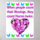A esta encantadora enfermera le encantará esta flor y mariposa rosada "Cuando la gente cuenta sus bendiciones, podrían enfermar dos veces" diseño de www.zazzle.com/myheavenlyblessings Su enfermera se encargará de este conmovedor diseño de Enfermería en tés, tazas, vajilla, decoración en casa y encantadores regalos. Que tu enfermera número uno sepa que ella significa el mundo para ti y que es un ángel enviado de Dios. Todos nuestros diseños de enfermeras inspiradoras pueden ser personalizados y personalizados con un nombre, fecha o evento. Este inolvidable regalo de Enfermeras es perfecto para vacaciones, cumpleaños y cualquier ocasión.