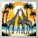 Un diseño fresco con algunas jirafas en la playa durante el atardecer!