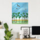 Colorido arte mural, árboles de eucalipto y pájaros. Tuvo que recortar la imagen original, así que se agregó la firma impresa. Intenta un tamaño más pequeño si quieres.