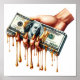 mujeres con mano sosteniendo billetes de 100 dólares goteando arte de oro líquido