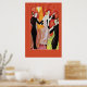 Ilustracion Roaring Twenties sobre el fondo rojo, de Annie Offterdinger para la revista Jugend, c.1923. Sofisticados chicas de moda en sus preciosos vestidos con la cabeza en la cabeza, junto con sus gents de corbata blanca y cruz, hacen una impresionante declaración de moda mientras bailan de noche. Un gran regalo y una pieza de recuerdo para los amantes del arte y la moda del deco, que representan la Edad de Oro del Jazz.