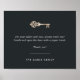 Recuerde a los clientes, empleados e invitados que se laven las manos y eviten el contacto con las superficies con esta moda y el letrero de los baños de oficina. Perfecto para empresas de corretaje inmobiliario, oficinas de empresas de gestión inmobiliaria, o para exhibiciones en casas abiertas o exhibiciones. El diseño presenta letras blancas modernas en un suave fondo negro acentuado con un esqueleto vintage de ilustracion clave en un falso Relieve metalizado dorado.