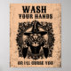 Póster Lávate las manos o te maldeciré un baño divertido