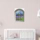 Vistas al jardín de lavanda, escena de la falsa ventana del arco, para una oficina sin ventanas. Poster de ilusión óptica de paisaje muy realista que se vería genial en una oficina o en una pared de estudio.