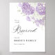 Soft watercolor florals in lavender, lilac, and white hydrangea tones frame refined typography, creating a timeless look that blends beautifully with classic, romantic, and garden-inspired weddings.