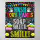 ¡Lávate las manos con jabón, agua y sonrisa! Perfectamente posters de seguridad de salud para el baño de la escuela, oficina de enfermería, aulas, pasillos escolares, baños y más! Imprime todo lo que necesites alrededor de tu escuela, iglesia u organización para recordarles a los niños que se laven las manos con jabón, agua y una sonrisa - ¡un mensaje feliz y positivo!