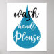 Pequeño poster para el cuarto de baño o en cualquier lugar junto a un lavabo, Lávese las manos con una gran gota de agua azul, disponible en varios tamaños y compruebe las opciones de marco de Zazzle.