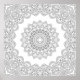 This coloring page features a refined mandala composition with a distinctive open center that creates a sense of space and balance. At its core, tightly arranged scalloped and pointed forms build a compact floral-inspired structure, surrounded by a ring of elongated leaf-like shapes that add gentle contrast. The design then expands outward into a broad, airy middle area before transitioning into an ornate outer border. This border is filled with repeating curved motifs and stylized botanical elements that form a continuous decorative frame around the page. The clean, consistent line work allows for precise coloring, making it ideal for experimenting with layered palettes, soft gradients, or bold contrasting tones between the center and the outer frame. The spacious middle also offers flexibility for creative color blending or even mixed media accents.