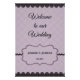 Cree un signo de bienvenida personalizado para su boda con este poster. Está listo para ser personalizado con su propio mensaje de bienvenida, sus nombres y la fecha de su boda. Mis ilustraciones de encaje negro están colocados sobre un fondo de lavanda suave con un patrón de edredón falso.