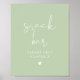 Este rótulo de bar de aperitivos cuenta con un elegante tipo de letra manuscrita y un moderno diseño minimalista con una vibrante combinación de colores verde pastel y blanco. Cambie fácilmente los colores de fuente y el color de fondo para que coincidan con el estilo de evento. Par con elementos adicionales de la colección LEAH para obtener un aspecto coherente.