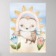 Póster Lechuza, animales bebés, boho, flores, arcoiris