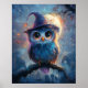 Póster Lechuza caprichosa en Gorra de brujas con luna lle