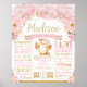 Póster Lechuza Floral Rosa Cumpleaños 1er Hito Estadístic