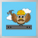 Un ilustracion de una linda lechuza trabajadora de la construcción personalizado con un gorra duro amarillo y un martillo sobre una viga de acero. Este búho kawaii adorable con bigote hermoso quería alardear de su nuevo trabajo, ¡para ser constructor! Este lindo diseño es la mejor idea de regalo para los hombres, el cumpleaños de papá, el día del padre, el esposo, el aniversario del boda y los niños que gustan de la construcción.