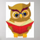 Un búho muy sabio leyendo un libro. Este diseño parece realmente efectivo en este Poster