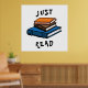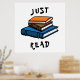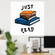 Ilustracion de un montón de libros con texto que dice: "Just Read".