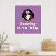 Un pingüino lindo y gracioso de "Leer es mi cosa" sosteniendo sus libros.