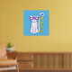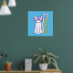 Este poster presenta un ilustracion extraño y gracioso de un gato blanco con gafas violetas que comparte la palabra "LEER" con letras en negrita. Este poster haría una llamativa decoración de pared para un libro de lectura en un aula, un salón para niños, un rincón de libros para niños en una biblioteca o librería.
