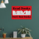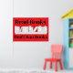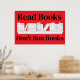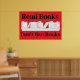 Leer libros no los prohibe. Apoye a las escuelas y bibliotecas. No dejes que ganen los carteles del libro. Libros y texto en un fondo rojo.