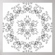 This refined mandala design features a graceful arrangement of curling scrollwork and airy botanical accents, creating a light, ornamental composition that feels both classic and inviting. At the center, a softly radiating floral star anchors the design, surrounded by delicate, flame-like curves that ripple outward in a balanced circular formation. These flowing elements transition into an open ring of symmetrical scrolls, each accented with small diamond shapes that add a subtle geometric contrast.