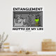 Muestra tu irónica actitud de mecánica cuántica hacia la vida con este poster que presenta un enredo cuántico, con el gato de Schrodinger en un estado vivo o muerto (es decir, la paradoja) junto con el siguiente truismo científico que dice "Motto enmarañado de mi vida". Poster de humor geek para todos los que conocen el mundo cuántico!