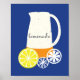 Lemonade Pitcher with lemons Poster Art. This colorful art is perfect for your kitchen or anywhere you like to relax.