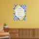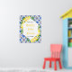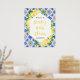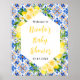 This fun and whimsical welcome sign features watercolor citrus lemons and foliage on a Mediterranean tile background. The text combines handwritten script and serif fonts for a stylish and modern look. This is perfect for a summer rustic baby shower.