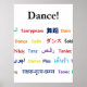 No importa cuál sea la cultura; no importa adónde vayas en el mundo, la gente tiene una palabra para bailar. Este colorido diseño presenta idiomas de todo el mundo y de todos los continentes. Con un fondo de blanco puro los idiomas del mundo están dispuestos en un esplendor multicolor bajo la palabra inglesa para danza centrada y en negrita negro. (c2013 Diseños TxCowboyDancer)