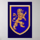 La pintura de Linda Baysinger Peck de un león heráldico de oro, sobre fondo azul azulado del escudo. Imagen © Linda Baysinger Peck Todos los derechos reservados.